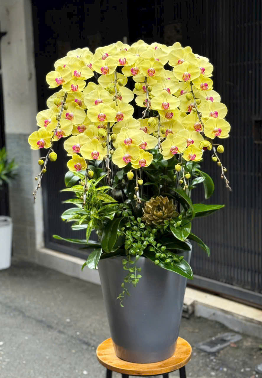 Chậu lan Tết được tuyển chọn kỹ lưỡng, hoa to, cánh dày, màu sắc tươi sáng và lâu tàn. Thiết kế chậu sang trọng, bố cục hài hòa, mang ý nghĩa tài lộc, phú quý và khởi đầu may mắn cho năm mới. Phù hợp trưng bày phòng khách, văn phòng, sảnh công ty, cửa hàng hoặc làm quà biếu Tết ý nghĩa tại Hải Phòng. Với vẻ đẹp tinh tế, ý nghĩa may mắn, thịnh vượng, chậu lan không chỉ làm nổi bật không gian mà còn thể hiện sự trân trọng và đẳng cấp của người tặng.