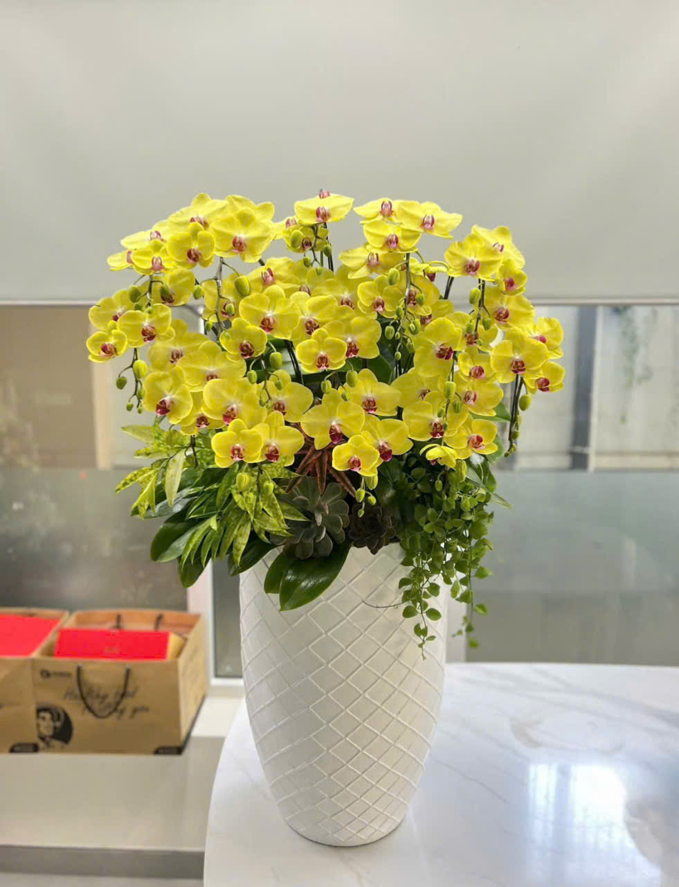 Chậu lan Tết được tuyển chọn kỹ lưỡng, hoa to, cánh dày, màu sắc tươi sáng và lâu tàn. Thiết kế chậu sang trọng, bố cục hài hòa, mang ý nghĩa tài lộc, phú quý và khởi đầu may mắn cho năm mới. Phù hợp trưng bày phòng khách, văn phòng, sảnh công ty, cửa hàng hoặc làm quà biếu Tết ý nghĩa tại Hải Phòng. Với vẻ đẹp tinh tế, ý nghĩa may mắn, thịnh vượng, chậu lan không chỉ làm nổi bật không gian mà còn thể hiện sự trân trọng và đẳng cấp của người tặng.