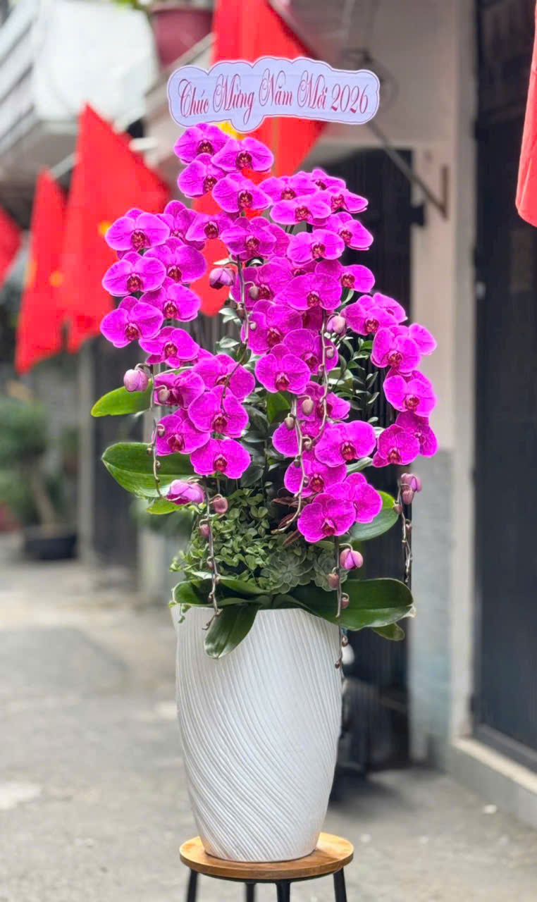Chậu lan Tết được tuyển chọn kỹ lưỡng, hoa to, cánh dày, màu sắc tươi sáng và lâu tàn. Thiết kế chậu sang trọng, bố cục hài hòa, mang ý nghĩa tài lộc, phú quý và khởi đầu may mắn cho năm mới. Phù hợp trưng bày phòng khách, văn phòng, sảnh công ty, cửa hàng hoặc làm quà biếu Tết ý nghĩa tại Hải Phòng. Với vẻ đẹp tinh tế, ý nghĩa may mắn, thịnh vượng, chậu lan không chỉ làm nổi bật không gian mà còn thể hiện sự trân trọng và đẳng cấp của người tặng.
