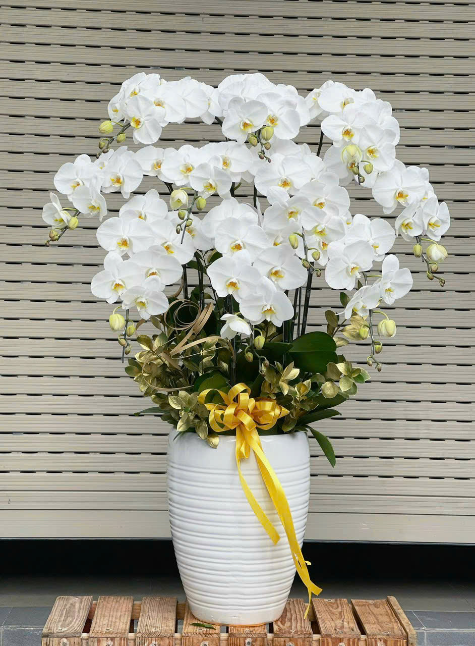 Chậu lan trắng là lựa chọn tinh tế dành cho dân văn phòng, mang đến không gian làm việc cảm giác thanh lịch, chuyên nghiệp và dễ chịu. Sắc trắng nhẹ nhàng giúp tạo sự thư thái, giảm căng thẳng, đồng thời thể hiện gu thẩm mỹ trang nhã và sự chỉn chu trong môi trường công sở, quầy lễ tân hoặc phòng họp, góp phần nâng tầm hình ảnh doanh nghiệp. Với vẻ đẹp tinh tế, ý nghĩa may mắn, thịnh vượng, chậu lan không chỉ làm nổi bật không gian mà còn thể hiện sự trân trọng và đẳng cấp của người tặng.