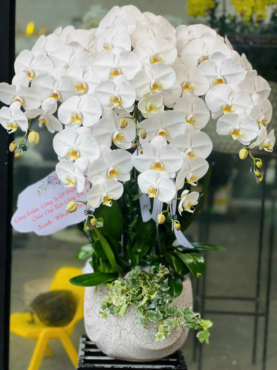 Chậu lan trắng là lựa chọn tinh tế dành cho dân văn phòng, mang đến không gian làm việc cảm giác thanh lịch, chuyên nghiệp và dễ chịu. Sắc trắng nhẹ nhàng giúp tạo sự thư thái, giảm căng thẳng, đồng thời thể hiện gu thẩm mỹ trang nhã và sự chỉn chu trong môi trường công sở, quầy lễ tân hoặc phòng họp, góp phần nâng tầm hình ảnh doanh nghiệp. Với vẻ đẹp tinh tế, ý nghĩa may mắn, thịnh vượng, chậu lan không chỉ làm nổi bật không gian mà còn thể hiện sự trân trọng và đẳng cấp của người tặng.