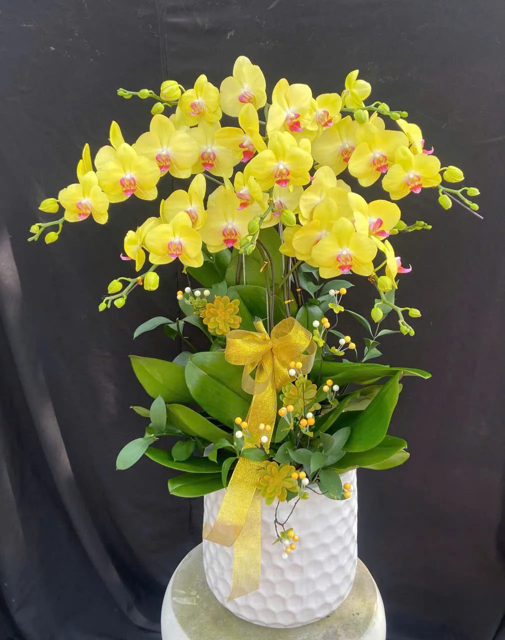Các chậu lan tại Hải Phòng thường được tuyển chọn kỹ lưỡng với hoa tươi lâu, cánh dày, màu sắc hài hòa như trắng, tím, vàng hoặc hồng, kết hợp cùng chậu sứ hoặc chậu đá sang trọng. Thiết kế chậu lan chú trọng đến sự cân đối, tinh tế và tính thẩm mỹ cao, giúp tổng thể trở nên nổi bật nhưng vẫn giữ được nét trang nhã, phù hợp với nhiều không gian khác nhau.
